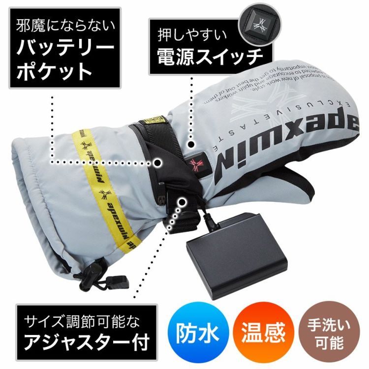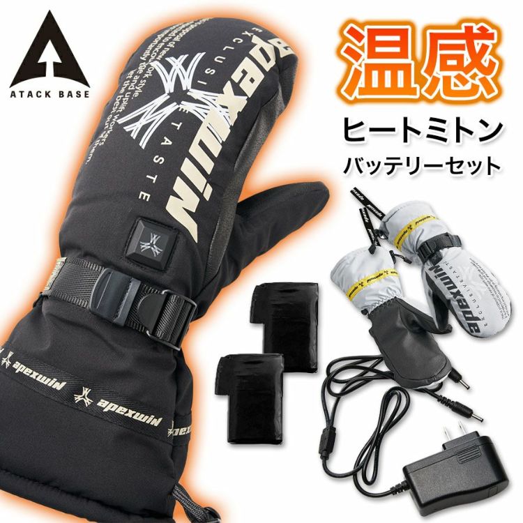 アタックベース ヒーターグローブ ミトン手袋 425075 バッテリーセット 撥水 防寒 手袋 電熱 グローブ バイク apexwin ATACK BASE プロノ