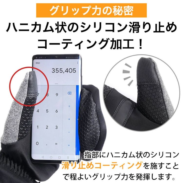 指部にハニカム状のシリコン滑り止めコーティングを施すことで程よいグリップ力を発揮します。