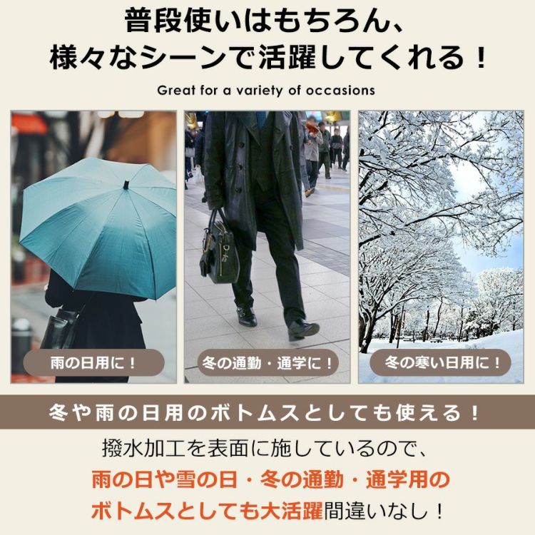 表生地には撥水加工を施しているので、パンツに浸水しにくい仕様。