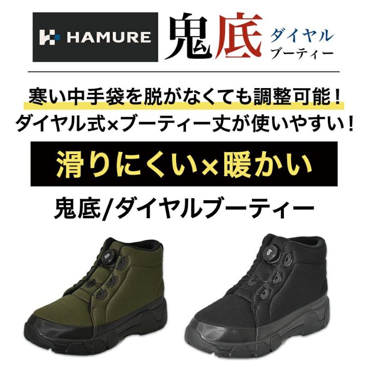 ハミューレ 鬼底 ダイヤルブーティー HMU-2540/HMU-2537 メンズ レディース ガラス繊維 防寒 耐滑 防滑ブーティー 冬靴 スノーシューズ スノーブーツ HAMURE