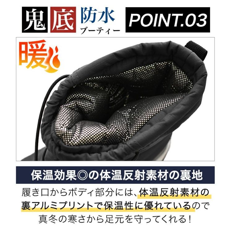 裏アルミプリント&内側フリースが暖かい防寒仕様&滑りにくいガラス繊維を使用したオリジナルソール「鬼底」を 装備したプロノでしか買えない防寒ブーツです。