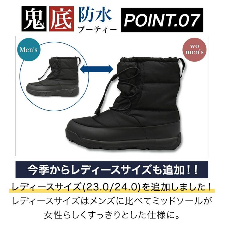人気の鬼底シリーズで「先芯無し、防水仕様、ブーティー丈(長め丈)が欲しい!」というお客様のご要望にお応えして登場!