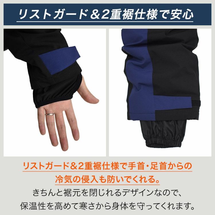リストガード&二重袖・二重裾:冷気の侵入を防ぎ、保温性アップ