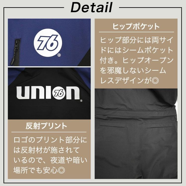 4L UNION76 ナナロク ウインターツナギ No.76-2517 撥水 ストレッチ つなぎ オーバーオール ヒップオープン 腰割れ メンズ おしゃれ 冬 作業服 作業着 釣り バイク スキー スノーボード プロノ