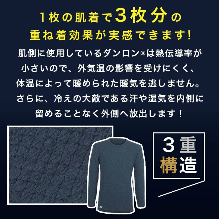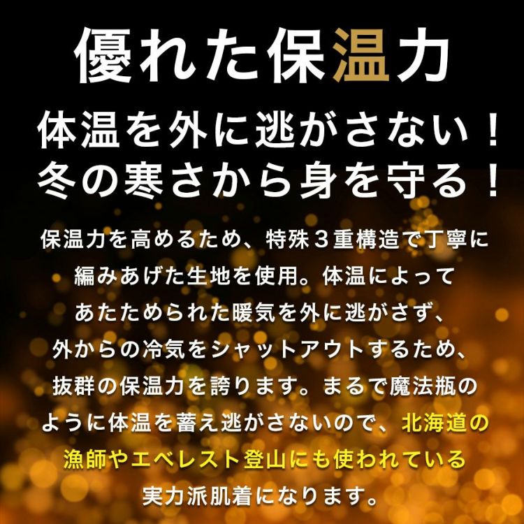 寒さ対策に最適なひだまりのチョモランマの丸首シャツは、極寒の季節でも暖かさを保ちます。