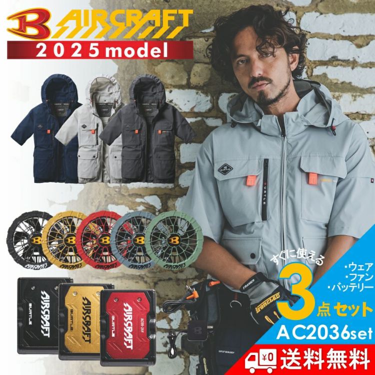 【2025年モデル】バートル エアークラフト ハイバックファン 半袖ブルゾンセット バッテリー・カラーファン・作業服の3点組 AC2036set メンズ 空調 夏物 作業着