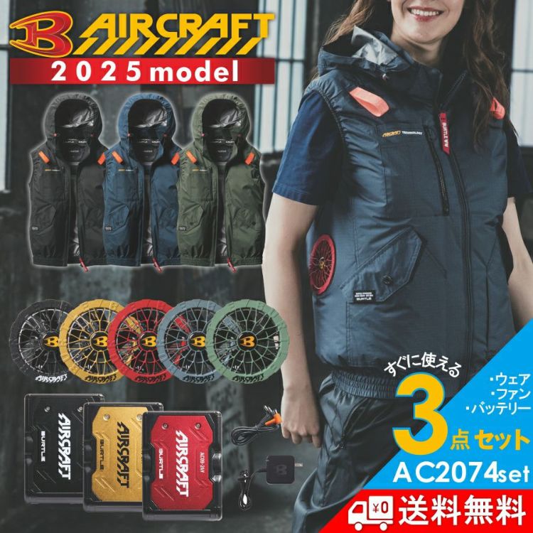 【2025年モデル】バートル エアークラフト サイドファン ベストセット バッテリー・カラーファン・作業服の3点組 AC2074set メンズ 空調 服 夏物 作業着 プロノ