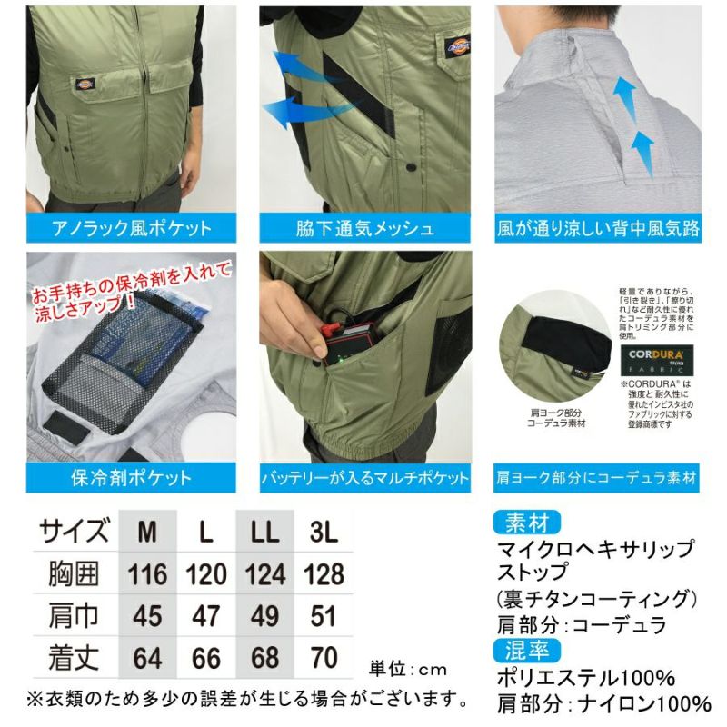 「Dickies(ディッキーズ)」ボルトクール 空調風神服 ベストセット/D-969set 遮熱 裏チタン 作業服 作業着 ファン バッテリー スマホ