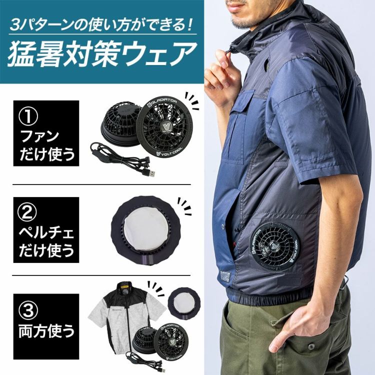男性 メンズ 半袖 ブルゾン 羽織り ライトアウター アウター はおり 接触冷感 速乾 猛暑 暑さ対策 冷却装置 冷却ウェア バッテリー モバイルバッテリー ペルチェ デバイス 20000mAh Type-C Type-A 冷却ウェア ファン 通勤 仕事 作業着 作業 ワークウェア 現場 DIY キャンプ 釣り バイク 屋外作業 アウトドア デイリーウェア サバイバルゲーム サバゲー 20代 30代 40代 50代 60代 夏 晩夏 真夏 GLADIATOR グラディエーター