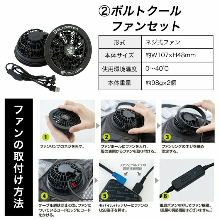 グラディエーター ボルトクールライト ペルチェ付き半袖ブルゾンセット G254140 ファン付き 空調 作業服 作業着 猛暑 夏