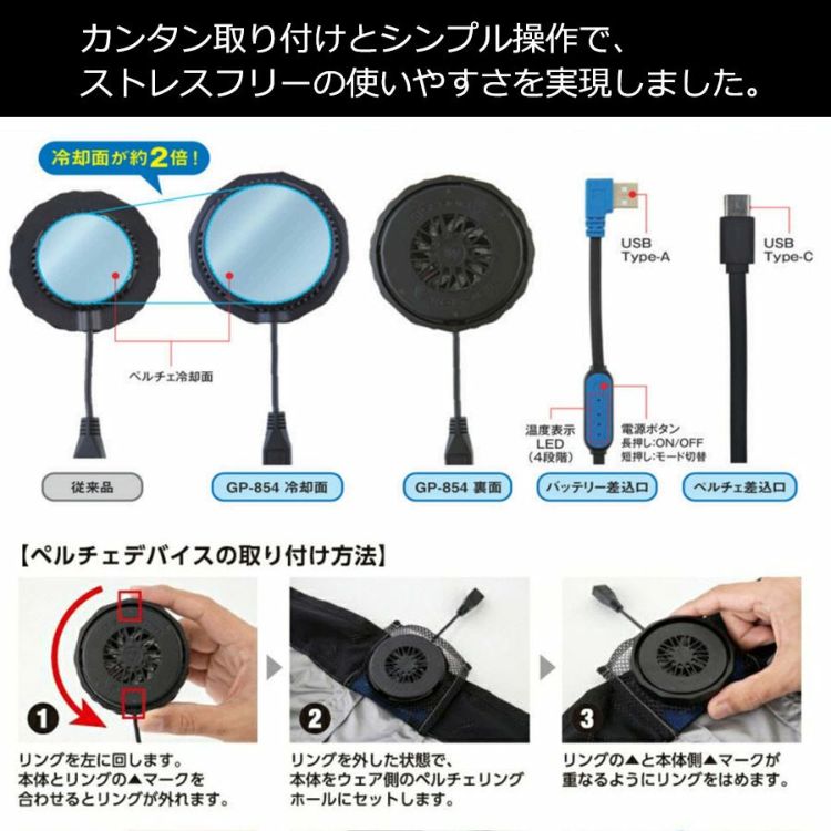 ■「ファンだけ使う」「ペルチェだけ使う」「両方使う」の3パターンの使い方ができる猛暑対策ウェア。