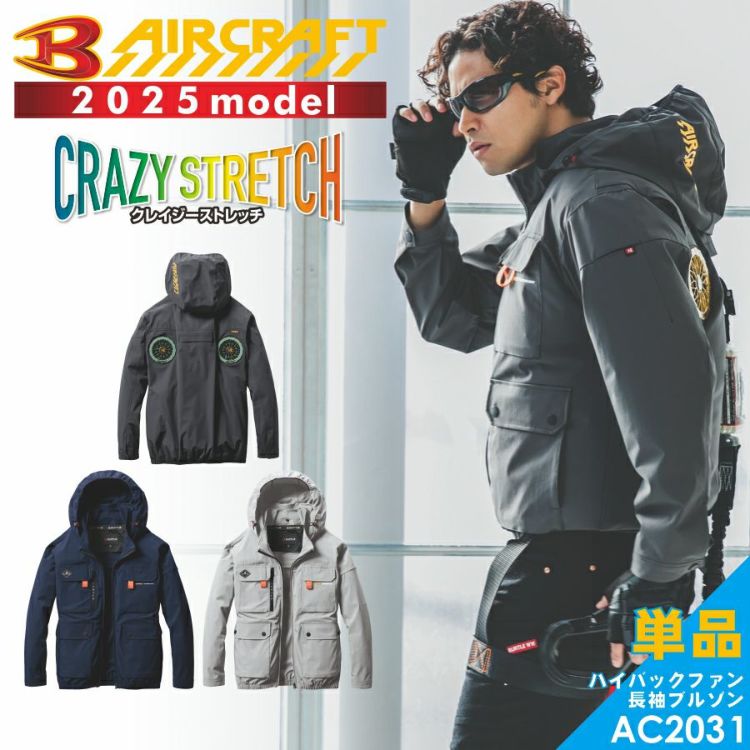 【2025年モデル】エアークラフト アームハイバックファン長袖ブルゾン AC2031 夏物 メンズ ブルゾン 作業着 空調 作業服 夏物 猛暑 ファン BURTLE AIR CRAFT