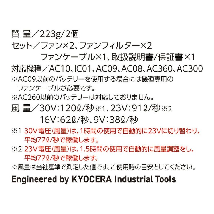※AC09以前のバッテリーを使用する場合は機種専用のファンケーブルが必要です。