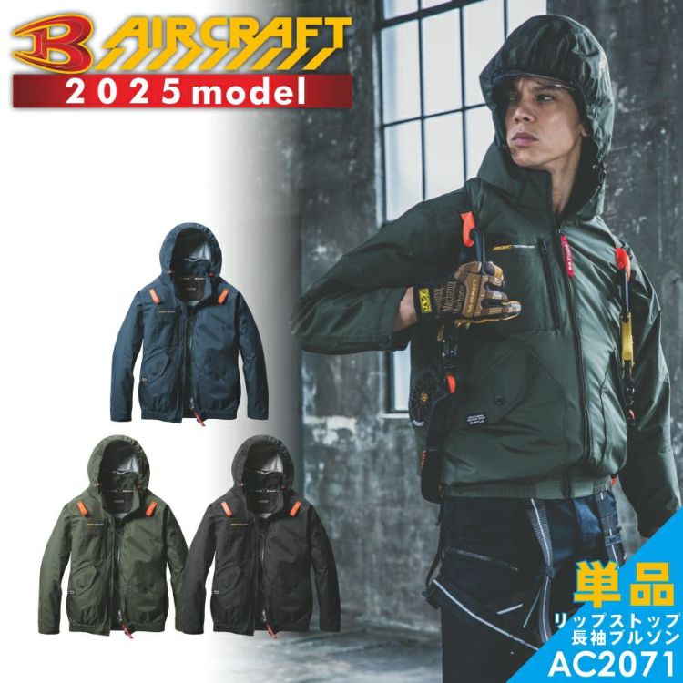 【2025年モデル】バートル エアークラフト リップストップ サイドファン 長袖ブルゾン AC2071 夏物 メンズ ブルゾン 作業着 作業服 空調 服 夏物 猛暑 ファン BURTLE