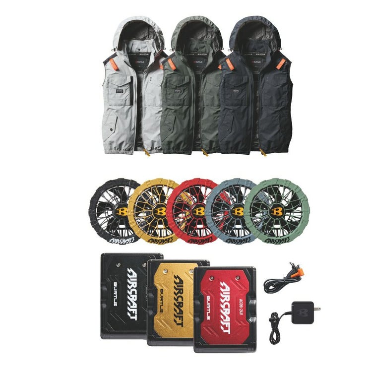 【2025年モデル】バートル エアークラフト サイドファン ベストセット(バッテリー・カラーファン・作業服の3点組) AC1154set メンズ 空調 夏物