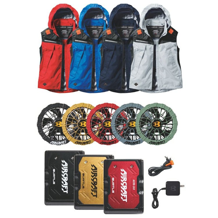 【2025年モデル】バートル エアークラフト フーディベストセット バッテリー・カラーファン・作業服の3点組 AC1194set メンズ 空調 夏物 作業着 プロノ BURTLE