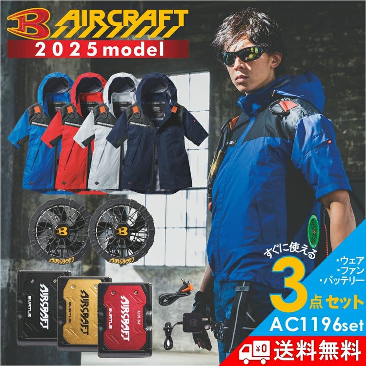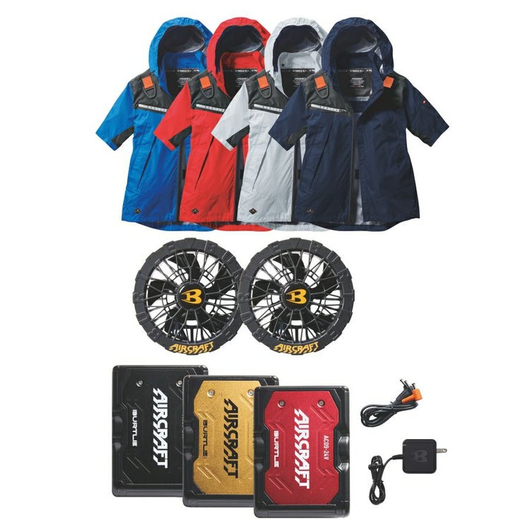 2025年モデル バートル エアークラフト フーディ半袖ジャケットセット バッテリー・ファン・作業服の3点組 AC1196set メンズ 空調 夏物 作業着 プロノ BURTLE