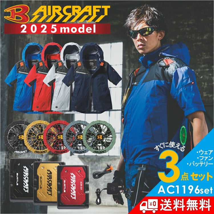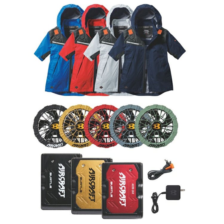 2025年モデル バートル エアークラフト フーディ半袖ジャケットセット バッテリー・カラーファン・作業服の3点組 AC1196set メンズ 空調 夏物 作業着 BURTLE