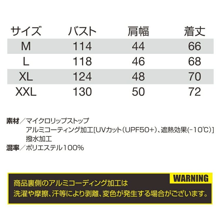 アルミコーティング加工[UVカット(UPF50+)、遮熱効果(-10℃)