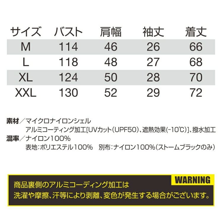 アルミコーティング加工[UVカット(UPF50)、遮熱効果(-10℃)、撥水加工