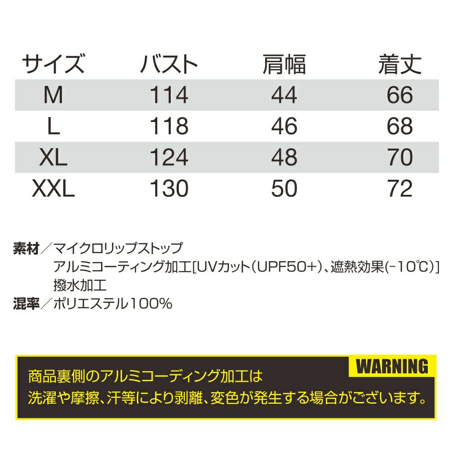 アルミコーティングによる遮熱効果やUVカット機能、撥水・防汚加工など、現場作業に求められる性能を備えています。