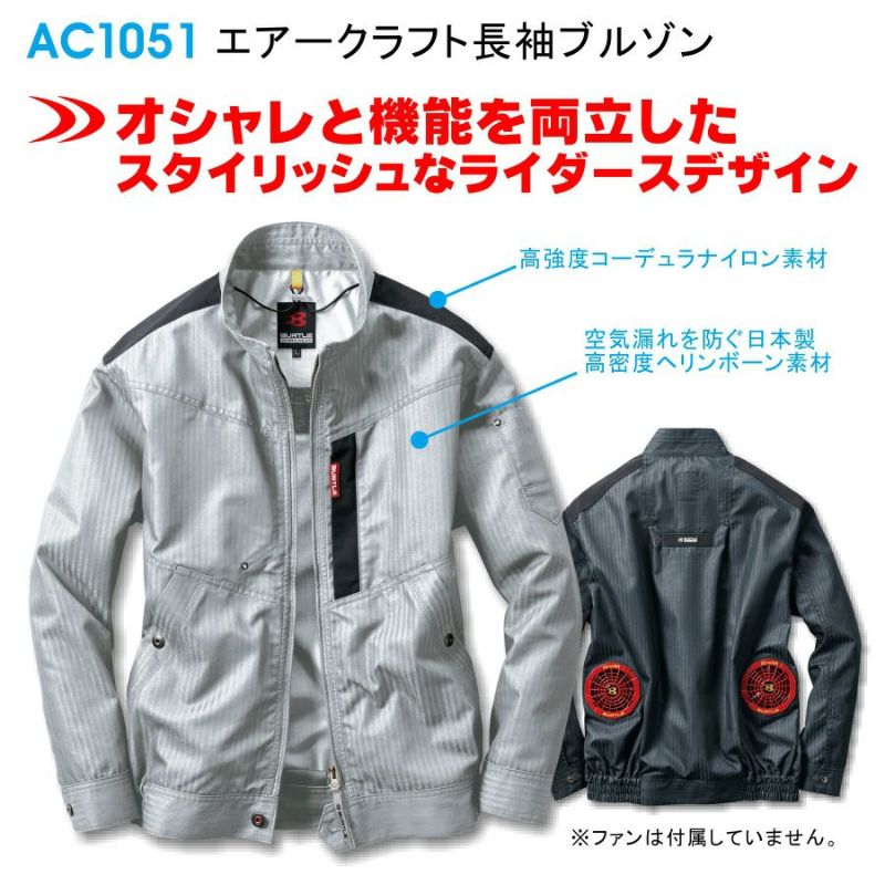 「BURTLE(バートル)」エアークラフトヘリンボーンブルゾン/AC1051/【2019 EXS 夏物 作業服】* メンズ ブルゾン 作業着 空調作業服 夏物 猛暑 ファン*