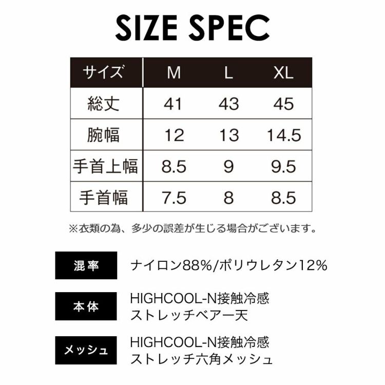 ややタイトめのシルエットで、脇・裾部分には嬉しい冷感メッシュ編み仕様。
