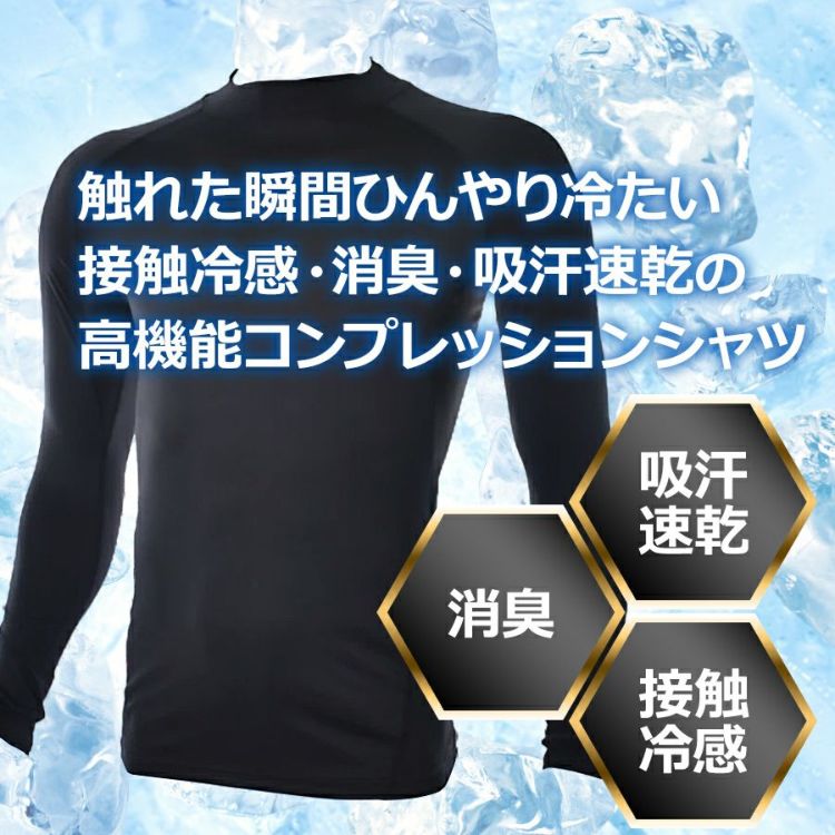 真夏の作業に、スポーツに。触れた瞬間にひんやり冷たい接触冷感の長袖コンプレッションです。