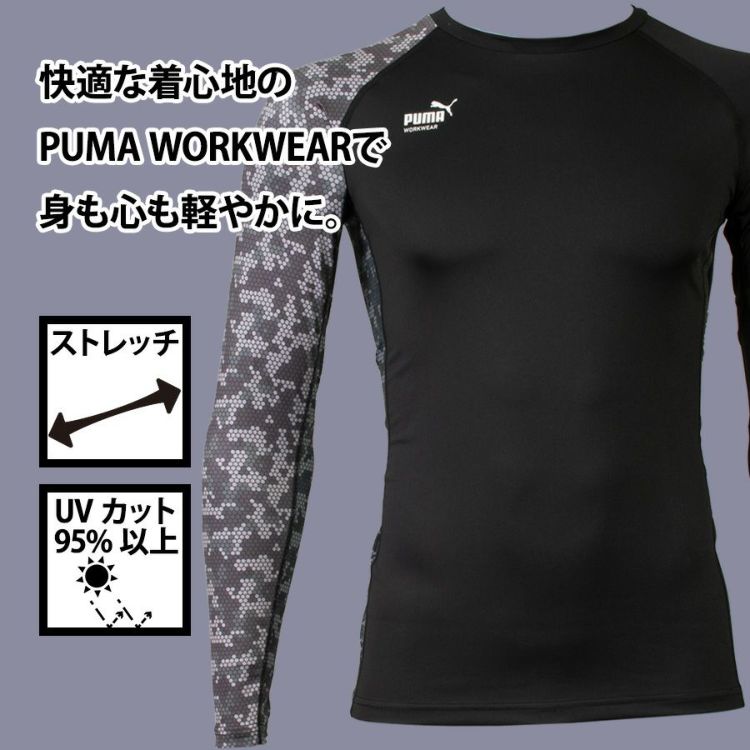 作業ウェア 長袖シャツ コンプレッション プーマ PUMA WORKWEAR 作業服 作業着 PW-2020N PUMA.AT WORK プーマワークウェア ストレッチ素材 スポーツウエア UVカット アンダーウェア
