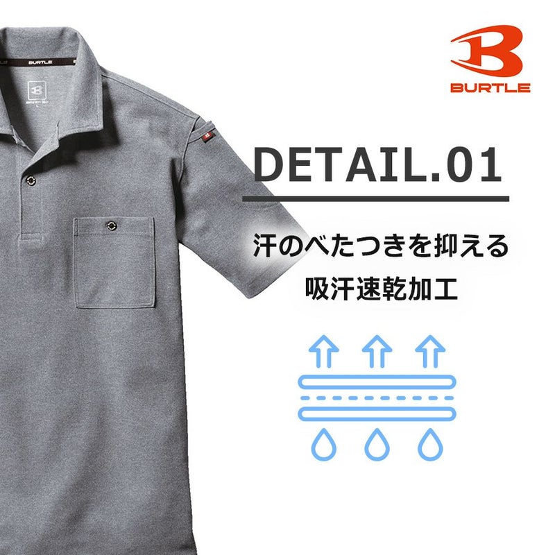 BURTLE(バートル)のさらっと快適半袖ポロシャツ。 バートル 吸汗速乾 DRY カノコ半袖ポロシャツ 667 BURTLE メンズ トップス インナー 作業服 作業着 吸汗速乾ドライ