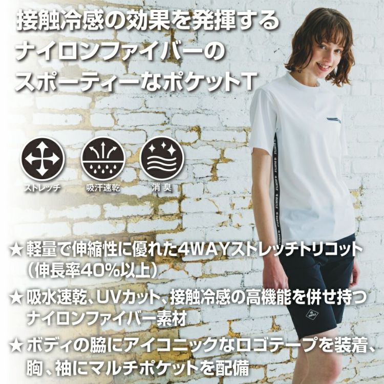 接触冷感効果を発揮するナイロンファイバーのスポーティーなポケットT