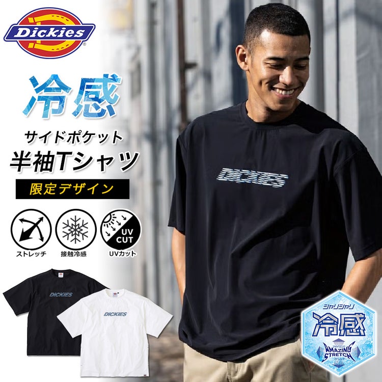 Tシャツ シャツ トップス TOPS ラウンドネック メンズ 接触冷感 ストレッチ UVカット 機能性 冷感 ひんやり 抗スナッグ M L XL XXL 仕事 作業着 作業 空気穴 ワークウェア スポーツ 運送 現場 DIY キャンプ 釣り バイク ツーリング シンプル ブラック ホワイト 作業 アウトドア 20代 30代 40代 50代 60代 春夏 夏 Dickies ディッキーズ