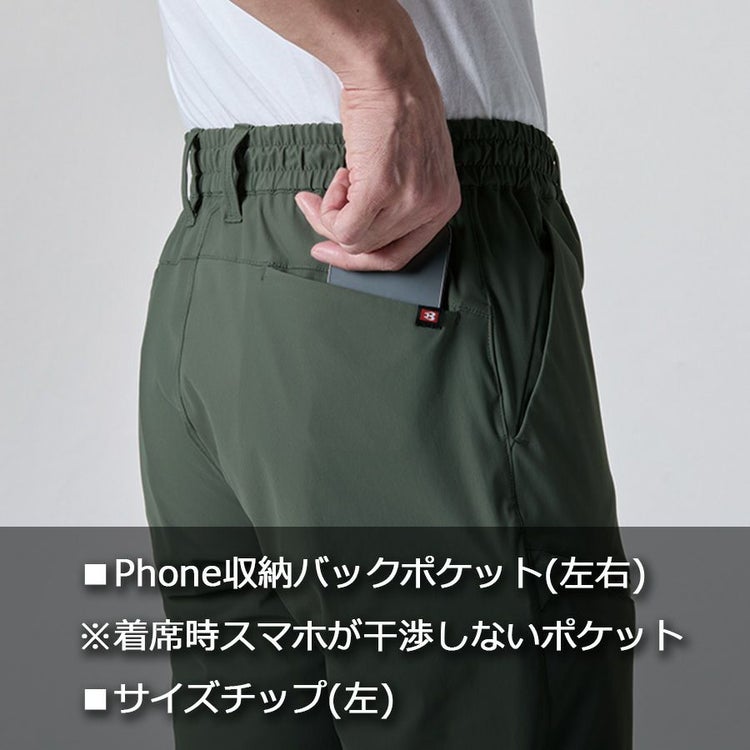 ・細身のテーパードシルエットを採用し、軽い着用感を極めたイージーパンツ
