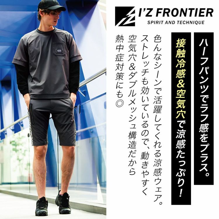 パンツ PANTS ボトムス BOTTOMS 半ズボン はんずぼん ハーフパンツ メンズ 接触冷感 ストレッチ 抗ピリング 抗スナッグ 異素材 異素材切替 メッシュ M L LL 3L 仕事 作業着 作業 空気穴 ワークウェア スポーツ 運送 現場 DIY キャンプ 釣り テニス ランニング シンプル ベージュ グレー カーキ 作業 アウトドア 20代 30代 40代 50代 60代 春夏 夏 I'Z FRONTIER アイズフロンティア