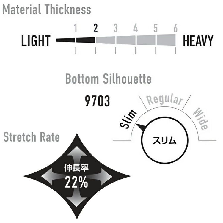 素材/エコ4WAYストレッチダブルウィーブ(伸長率22%)、SOLOTEX(TEIJIN)、制電ケア設計、吸汗速乾性、ドライタッチ