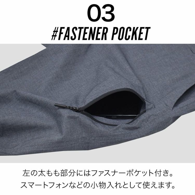 左太ももにはファスナーポケット付きでスマートフォンなどの小物の収納に便利です。