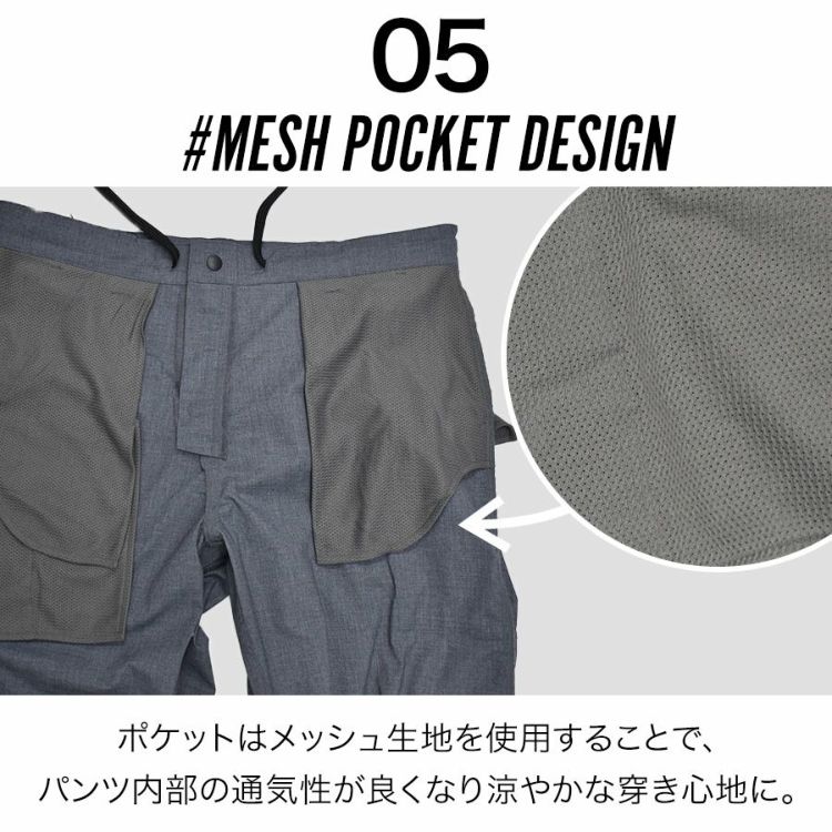 動きやすいストレッチの軽量生地を採用し、膝部分にはダーツと立体縫製をデザインすることで、膝の曲げ伸ばしをスムーズに行えるよう工夫しています。