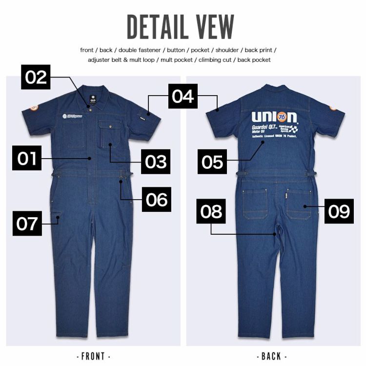 ツナギ つなぎ オールインワン ジャンプスーツ オーバーオール 男性 メンズ デニム ライトデニム ストレッチ 多機能ポケット クライミングカット M L LL 3L 4L 仕事 作業着 作業 ワークウェア 現場 DIY キャンプ 釣り バイク ツーリング 防災 作業 アウトドア アメカジ ヴィンテージ カジュアル タウンユース おしゃれ 20代 30代 40代 50代 60代 夏 初夏 晩夏 春 夏 秋 ナナロク UNION 76