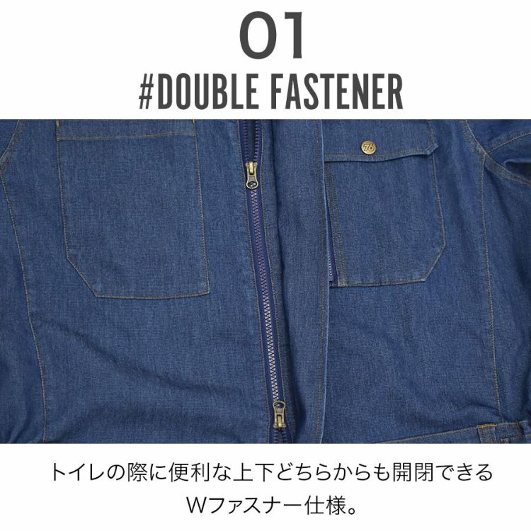 UNION76 ナナロク 半袖冷感デニムツナギ No.76-2508 ストレッチ 春 夏 メンズ 作業着 作業服 バイク 車 つなぎ アウトドア DIY