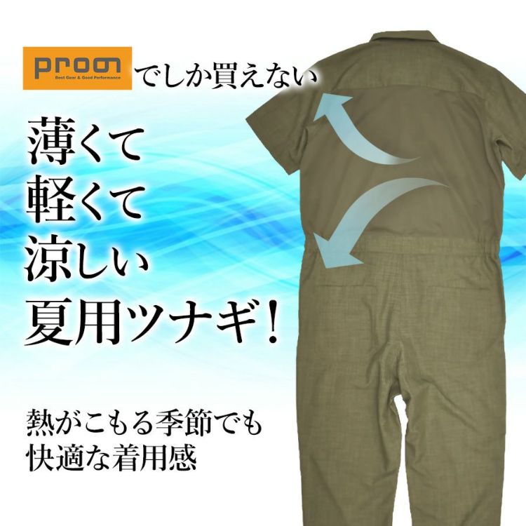プロノ 半袖バックメッシュツナギ PR-2422 メンズ 夏用 作業服 作業着 涼しい 通気 オーバーオール オールインワン Prono