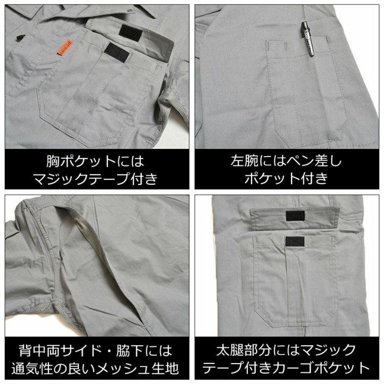 プロノ クールストレッチ長袖カーゴツナギ PR-2506 接触冷感 通気 メッシュ 夏用 薄生地 オーバーオール メンズ つなぎ おしゃれ 動きやすい 作業服