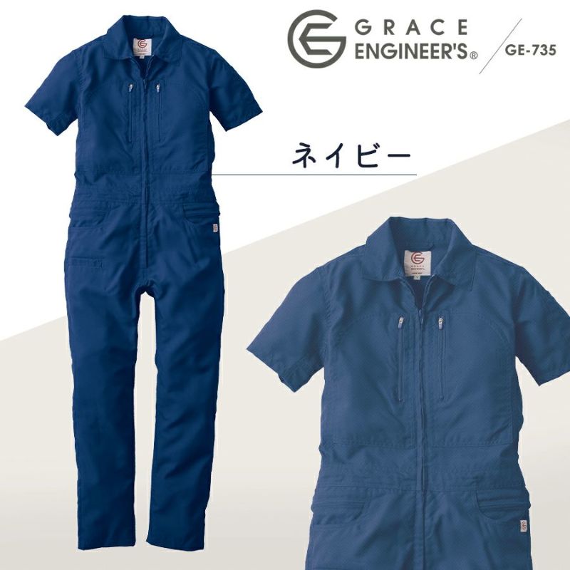 グレイスエンジニアーズ クールフェミニンツナギ GE-735 レディース 女性用 半袖 夏 涼しい ヒップオープン おしゃれ 酪農 作業服