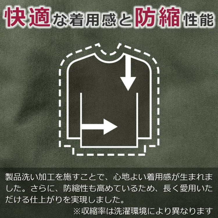 ★製品洗い加工によりコンフォタブルな着用感と防縮性をアップ