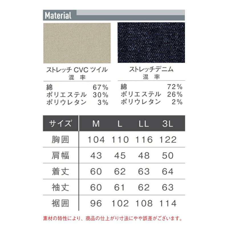 カラー商品には綿の風合いと高い形態安定性能を兼ね備えたストレッチCVCツイルを使用。