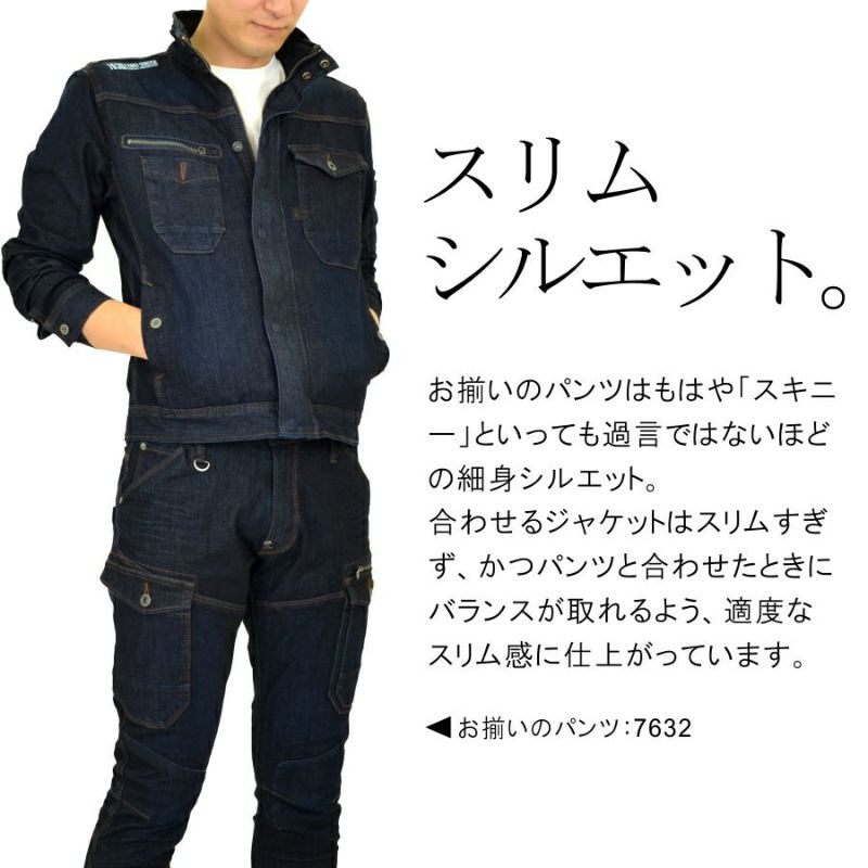 オシャレ作業着ブランド「アイズフロンティア」史上最もスリム(2019年2月現在)なワークパンツ「7632」とともに登場したジャケット。