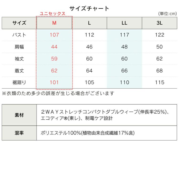 2WAYストレッチコンパクトダブルウィーブ(伸長率25%)、エコディア(東レ)、制電ケア設計
