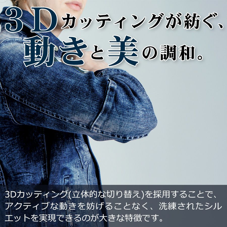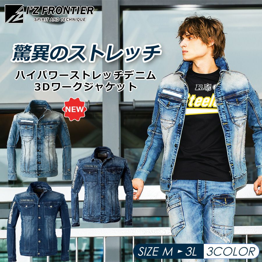 他の画像を見る 「アイズフロンティア」ストレッチ3Dデニムワークジャケット/#7010 メンズ 作業服 作業着 ブルゾン ¥ 7,689 税込 圧倒的存在感を放つ究極のライダースデニムモデル! カートに入れる お気に入りに登録する