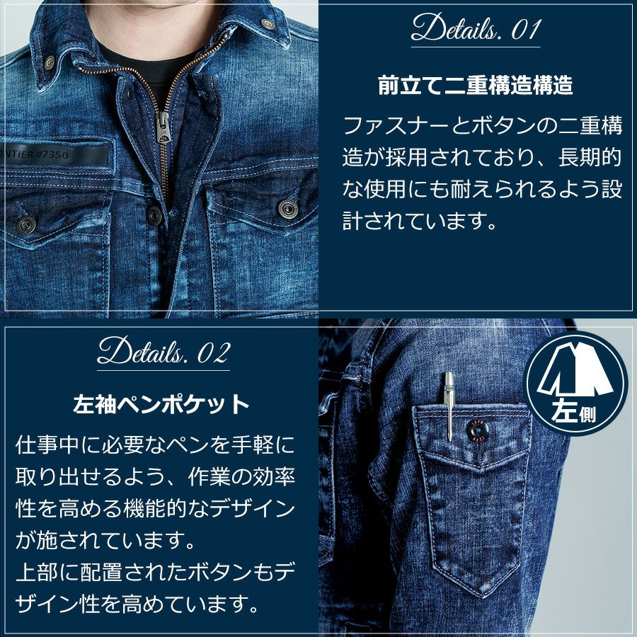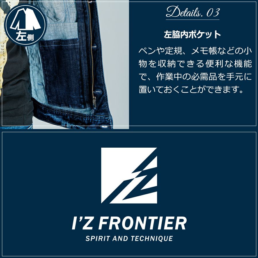 他の画像を見る 【4L】「I'Z FRONTIER」ストレッチデニムワークジャケット(上下別売り)/#7630/【2016 WEX 年間 作業服 プロノ】* 作業着 作業服 ワークウェア Gジャン* ¥ 8,789 税込 デニムなのに軽いデニムなのに伸びる!新世代ワークウェア!* 作業着 作業服 ワークウェア * カートに入れる お気に入りに登録する