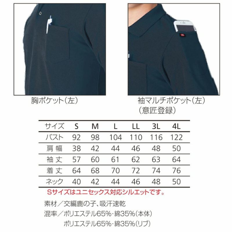 ポロシャツ 長袖 BURTLE バートル 吸汗 速乾 ストレッチ