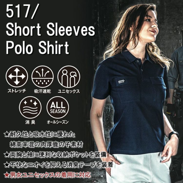 バートル ヘビーウエイト半袖カノコポロシャツ 517 メンズ レディース 作業服 作業着 吸汗速乾 ストレッチ 消臭 BURTLE